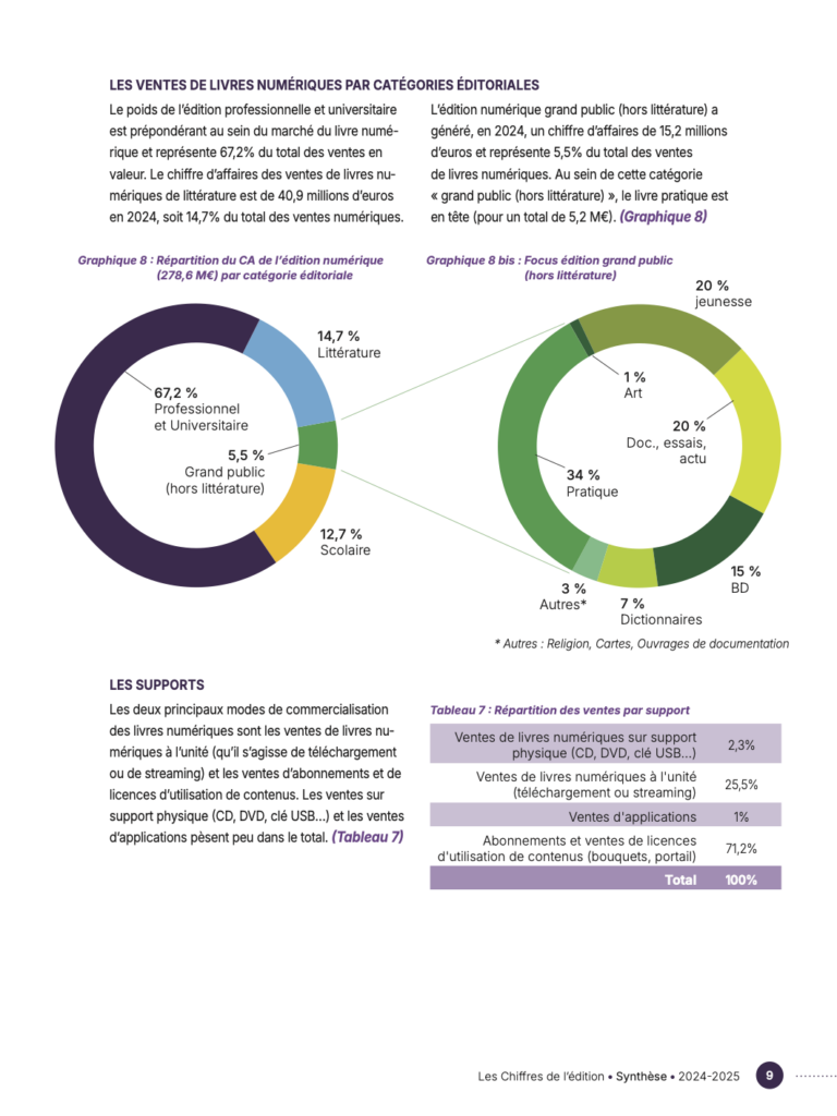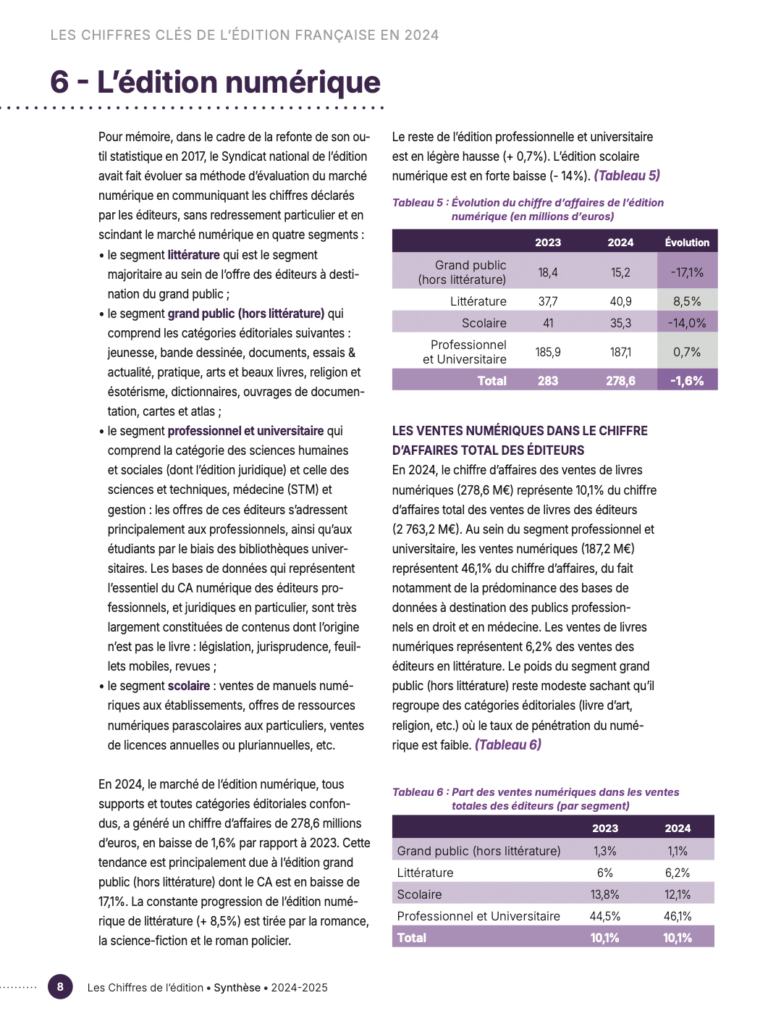 Le livre numérique représente encore une part encore modeste du marché en France en part de chiffre d’affaires.